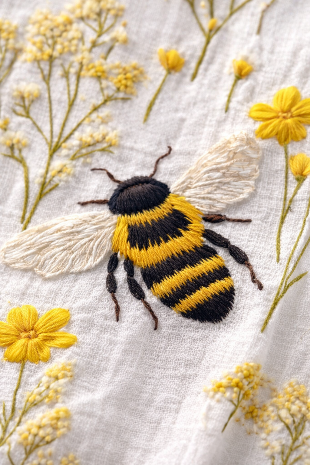 The Fiorine | Golden Bee Blouse captures the quiet beauty of nature with a playful yet elegant touch. Set against a crisp white background, delicate yellow blossoms and buzzing bee motifs create a design that feels lively without being overstated. It’s a blouse made for sunny moods, relaxed days, and moments when you want your outfit to feel uplifting and effortless.