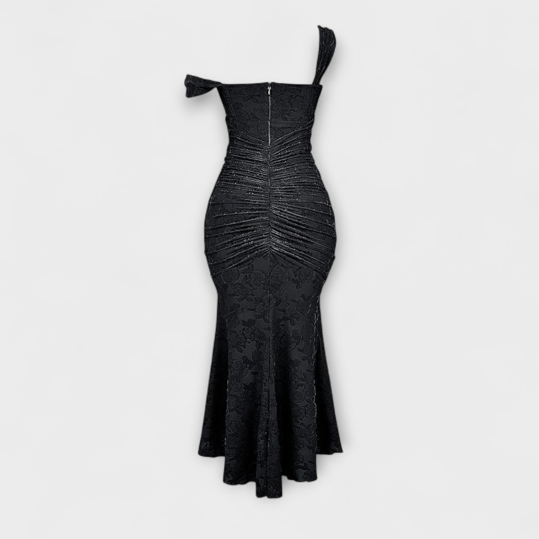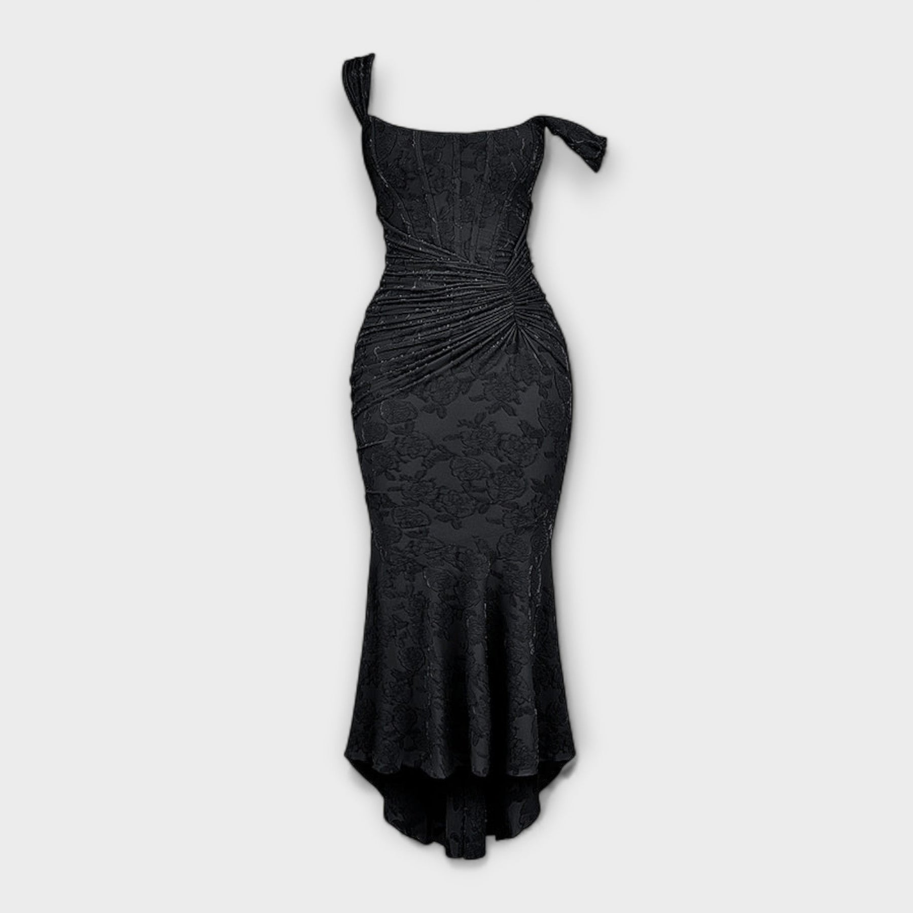 With the corset design, you enjoy a perfect fit, while the magical pleats at the waist add a touch of elegance. Ideal for cocktails, nights out, or any celebration, this dress is designed to make you stand out and create an unforgettable appearance.